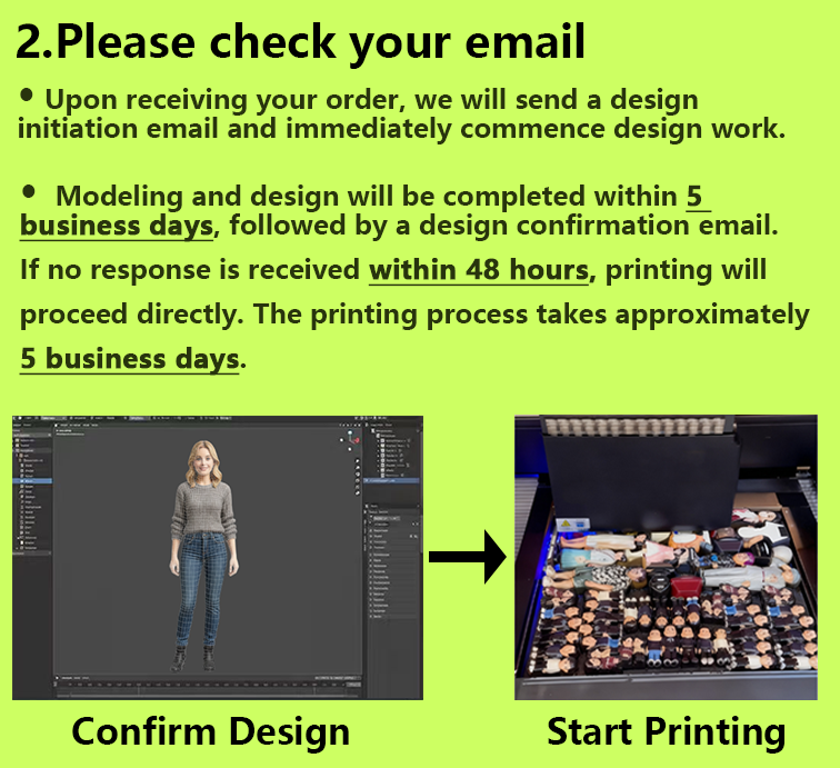 The 3D model design is for reference only, the actual 3D figure is 90% similar to the real person.